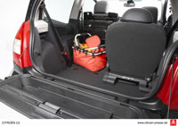 Fahrverhalten Das dynamisch angehauchte Fahrwerk des C2 VTS entspricht der sportlichen Positionierung des Modells. Die elektrische Servolenkung mit variabler Lenkkraftunterstützung macht die Lenkung präzise und effizient. Bei niedriger Geschwindigkeit ist sie leichtgängig und nimmt mit zunehmendem Tempo an Schwere zu, was den Kontakt zur Straße fördert. Eindeutig im Vordergrund standen bei der Entwicklung des C2 VTS Fahrleistung und Dynamik, was den französischen Ingenieuren zweifelsohne bestens gelungen ist. Besonders auf kurvenreichen Strecken werden die Fahrwerksgeister geweckt und der frontgetriebene C2 tänzelt durch die Landschaft wie ein ausgebüchstes Gokart. Interieur Der Innenraum weist vorne ein prima Platzangebot auf. Wer nach hinten will, ist bei einem Zweitürer obligatorisch nicht so gut dran. Die beiden Einzelsitze im Fond sind verschiebbar und lassen sich ohne Anstrengung zusammenklappen, wodurch sich der verfügbare Raum im Heck auf einfache Weise bedarfsgerecht variieren lässt. Umgeklappt ergibt sich noch keine ebene Ladefläche. Die wird erreicht, wenn die Rückbank nach oben geklappt und die vorderen Passagiere ihre Sitze nach vorne schieben. Ab und zu rastet dabei der Vordersitz nicht sofort richtig ein. Kein Problem für die, die es wissen. Wie alle C2 Varianten hat der VTS eine waagerecht geteilte Heckklappe, die den Kofferraum leicht zugänglich macht. Die obere Hälfte wird nach oben und die untere nach unten aufgeklappt. In diesem Zustand kann die untere Klappe als Ablage genutzt werden, auf der man die Einkaufstasche vor dem Verstauen kurz absetzen kann. Das Gepäckraumvolumen beträgt bis zur Abdeckung 166 bis 224 Liter, je nachdem wie weit die Fondsitze vorgeschoben wurden. Bis zum Dachhimmel lassen sich 879 Liter unterbringen. Der seit 2004 auf dem Markt befindliche Citroën C2 wird in acht Ausstattungsvarianten gebaut. Vier Benzin- und zwei Dieselmotoren mit Leistungen von 60 bis 122 PS machen die Auswahl nicht leicht. Die Preise reichen von 11.550 bis 18.340 Euro. Unser Testkandidat liegt mit 17.990 Euro im oberen Bereich der Preisliste. Wer eine sparsame Benzinvariante möchte, ist mit dem 1,4-Liter „Stop & Start“ gut bedient. Er soll mit durchschnittlich 5,6 Liter Superbenzin auskommen und kostet 15.990 Euro.