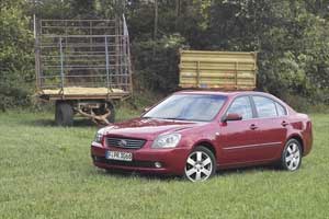 BU: Der moderne Kia Magentis macht auch neben einer ländlichen Heuwagen-Idylle eine gute Figur.